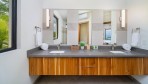 S'étendant sur 445 m², elle offre une salle de séjour avec un espace dînatoire, une cuisine ouverte pourvue de finitions en teck, 6 chambres dotées chacune d'une salle de bains adjacente, une buanderie, des toilettes pour les invités, une vaste terrasse et une piscine à débordement qui permet de se détendre tout en admirant les couchers de soleil.