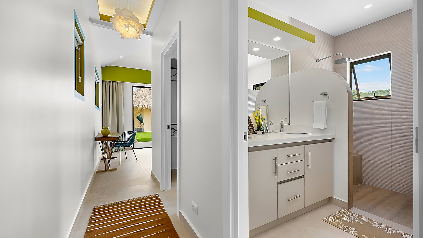 La maison principale offre 4 chambres, 4 salles de bains, une accueillante salle de séjour, une cuisine ouverte et une buanderie.
