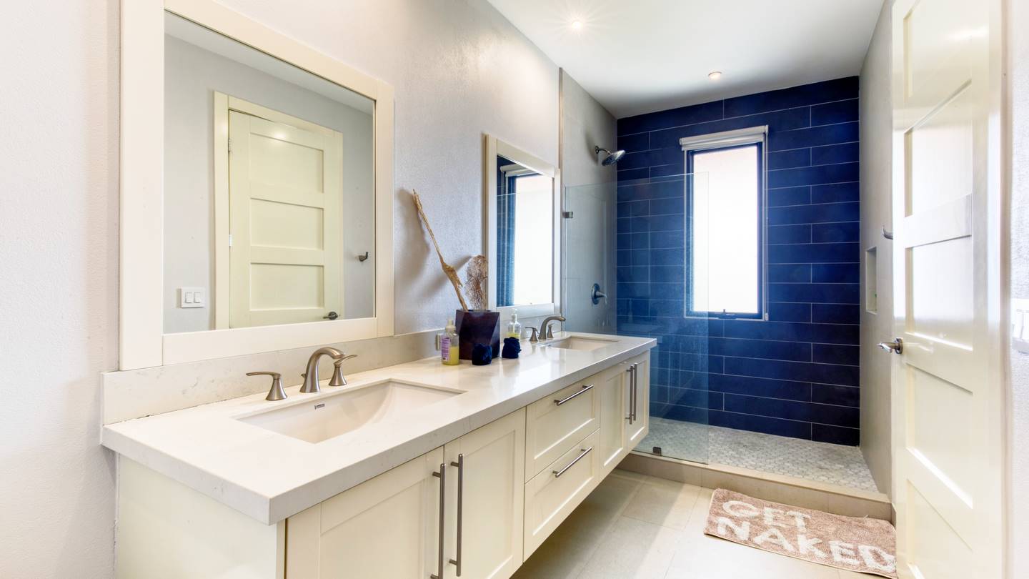 La maison d'invités offre, quant à elle, 3 chambres avec vue mer, une salle de bains, une salle de séjour avec une cuisine ouverte et une terrasse
